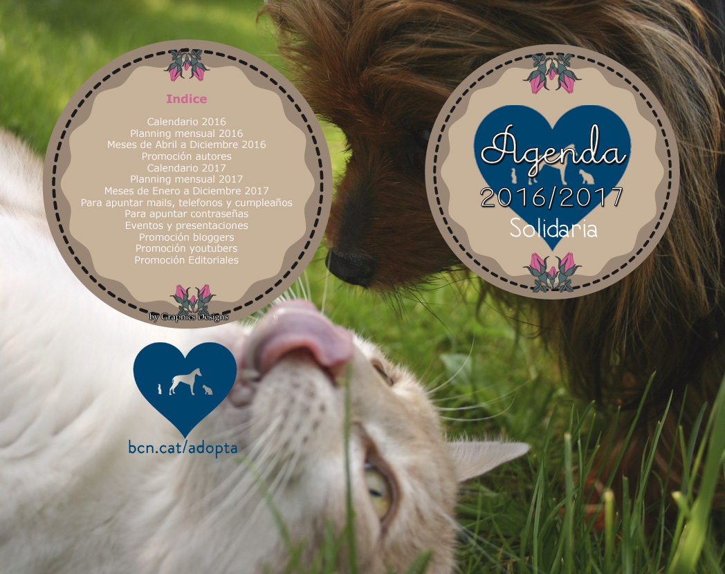 Hola a todosComo anuncíabamos por facebook os traemos esta agenda 2016/2017 solidaria.El 100% de las ventas de esta agenda irá para comprar comida para la perrera CAAC Centre d'acollida d'animals de companya de Barcelona una perrera que hay cerca de mi casa que cuidan a todos los perros y gatos abandonados, por los que también buscan dueños que los adopten.
