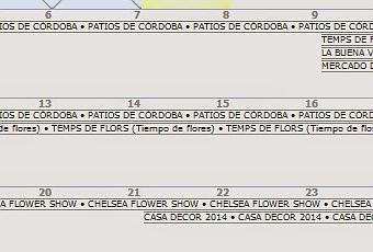 Empezamos con cuatro clásicos del mes de las flores: Patios de Córdoba, Temps de flors, Concursos de rosas de Madrid y Chelsea Flower Show.