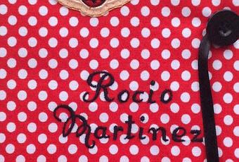 Bordé su nombre en negro, y cosí una aplicación bordada de Minnie. Para cerrar la agenda un botón y un lacito. La mayoría de las agendas traen su propio punto de libro, un lacito para encontrar más fácilmente el día en el que estamos, pero no todas, por si acaso, yo le he incluido uno y en el extremo inferior, un zapato de tacón negro que sé que le gustan mucho a Rocío.