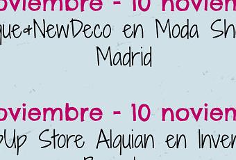 - 7 – 10 de Noviembre: Se celebra la segunda edición de “Antique&NewDeco” en Moda Shopping. Donde se podrá encontrar desde la vajilla más antigua hasta un cartel luminoso para decorar una de las paredes de su salón. Se la recomiendo encarecidamente, fui a la primera edición y merece muchísimo la pena.