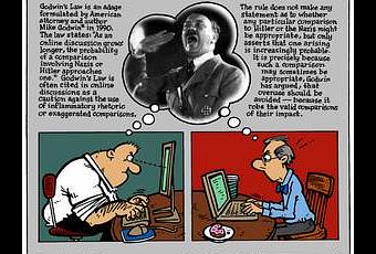 En internet existe lo que se conoce como “Ley de Godwin“, según la misma, en las discusiones o debates en internet llega un momento que alguien saca a colación el argumento de los Nazis o Hilter, e inmediatamente esa discusión se cierra y se da como perdedor de la misma a quien expuso ese argumento.