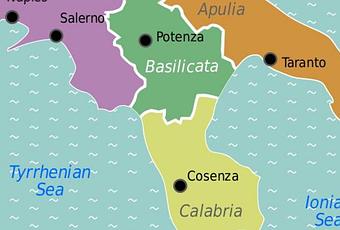 Basilicata limita al norte y este con Apulia, el "talón" , al sur con Calabria, "el dedo del pie", al suroeste con el mar Tirreno y al noroeste con Campania.