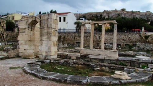 En lo que se conoce como el Ágora romana de Atenas, se pueden observar hoy las columnas de lo que fue en su momento la majestuosa biblioteca construida por el emperador Adriano para guardar los documentos, en los rollos de papiro usados en esa época.