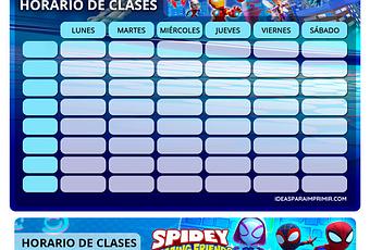 Horarios escolares de SPIDEY y sus SORPRENDENTES AMIGOS para imprimir gratis