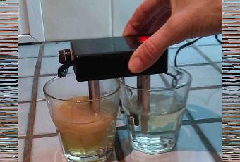Electrólisis. Vaso de la izquierda es agua del grifo y el de la derecha agua de ósmosis inversa.