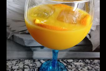 Elaboración:Poner en una jarra el vino espumoso, la ginebra, el vodka y el zumo de naranja.Mezclar dejar enfríar en la nevera un mínimo de un par de horas.Al momento de servir, añadir las rodajitas de naranja y los cubitos de hielo.