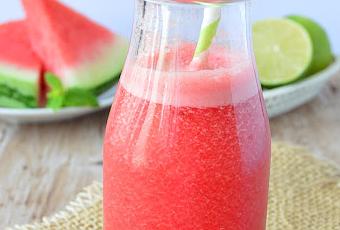 Ingredientes:300 grs. (2 tazas de pulpa de sandía), sin pepitas y cortadas en dados250 ml. (1 taza) de agua de cocoEl zumo de 1 limaHojas de hierbabuena (para decorar)Elaboración:Antes de comenzar con la receta, os recomiendo colocar todos los ingredientes varias horas en la nevera o incluso durante la noche, para que estén bien fríos.Ahora, echaremos los ingredientes en el vaso de la batidora y pulsar unos segundos para triturar todo bien, hasta formar un batido suave.En este momento lo podréis pasar por un colador de malla fina y retirar cualquier posible partícula de pulpa de la fruta o hacer como yo, que tampoco me importa. Ya solo nos queda servir, o volver a colocar en la nevera hasta el momento de tomarlo bien fría. A disfrutar en estos días de calor veraniego!! :P