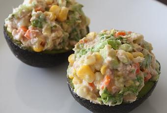 - Con una cuchara, hacer el orificio de los aguacates más grande, quitando una capa de la pulpa.