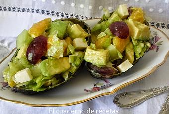 Es una pena que cada vez que he plantado alguno, no haya seguido creciendo, porque hubiéramos dado buena cuenta de todos los que hubieran ido saliendo. Pero del tamaño maceta, nunca pasaron para poder hacer el trasplante. Uno de mis hijos siempre dice, que sin aguacate las ensaladas son aburridas, y es que como te guste, lo encuentras imprescindible en algunos platos. El aguacate que ves en la foto, es de la variedad Pinkerton, que tiene un sabor riquísimo. Pero con los que he hecho la receta hoy es de tipo Hass, también con una pulpa excelente y un sabor delicioso.En Canarias es un producto de gran consumo y su precio es asequible. Me consta que en la Península también hay unos aguacates excepcionales, con importantes cultivos en la zona de Andalucia y Levante. Y esta receta es tan fácil que andaba dudando si subirla al blog, pero como al final de lo que se trata es de tener recopilado todo lo que comemos en casa, y ésta es de las habituales, hoy es la que toca. Me parece que además de resultar vistosa y estar cargada de vitaminas, si utilizamos las propias pieles de los aguacates, le damos un toque especial a la presentación.