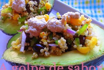 Ingredientes para los Aguacates rellenos de ensalada de Quinoa, judías negras, millo con salsa de nueces (4 aguacates):