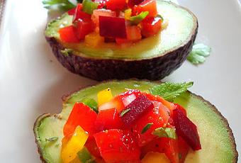 Me gusta la revista de cocina "Cuina" porque muestra novedades gastronómicas de Cataluña y de ese modo me puedo poner al día acerca de lo que se cuece en otras cocinas. Todas las recetas que publican están elaboradas con los productos que son más recomendables consumir en cada estación del año. Me he adelantada un poco porque todavía no hay en el mercado aguacates del sur de España. La remolacha la podemos encontrar en conserva, pero en cuanto pueda la compraré a los payeses de Gavá. Son dos productos que me gustan y como tenía fresones lo demás ha sido coser y cantar. Esta ensalada es una opción cien por cien vegetariana y además muy sabrosa.