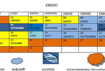 Por razones que aún y a estas alturas de vida desconozco, desde hace más de 10 años me he interesado en el tema de las pintas y repintas que los productores agrícolas (trabajadores del campo, campesinos) del país, denominan y han valorado desde los tiempos ancestrales para estimar el clima como elemento principal en el diagnóstico agrícola de los procesos productivo e identificar los rubros de producción. Y es que así me lo han relatado grandes amigos de la tierra, quienes con su experiencia vienen sustentando sus alimentos mediante la siembra, podemos mencionar a la Sra Otilia y su hijo Chelo en Tabay, también a Memo quien hace uso de los bueyes para el arado; el maestro pueblo Alvaro Trejo de La Pueblita del Corredor Mucarias y Liborio, quienes han promovido en el Estado Mérida la agricultura orgánica. Esta herramienta de estimación del clima, consiste en verificar la situación meteorológica al inicio de cada año a partir del segundo día del mes de enero es decir, cada 2 de enero se inicia la observación y cada día indica el mes, quiere decir entonces que el 2 sería febrero, el 3 marzo el 4 abril, el 5 mayo, el 6 junio, el 7 julio, el 8 agosto, el 9 septiembre, el 10 octubre, el 11 noviembre, el 12 diciembre éste análisis se le designa pintas, según los campesinos, porque referían en el vocabulario popular: Hay que aguaitar como pinta el cielo para la siembra este año, esto es para los primeros 15 días de cada mes. A partir del día 13 de enero se observa entonces las repintas para la segunda quincena de cada mes, sería entonces para el 13 febrero, para el 14 marzo, para el 15 abril, para el 16 mayo, para el 17 junio, para el 18 julio, para el 19 agosto, para el 20 septiembre, para el 21 octubre, para el 22 noviembre y para el 23 diciembre. Así lo graficamos en el siguiente recuadro: