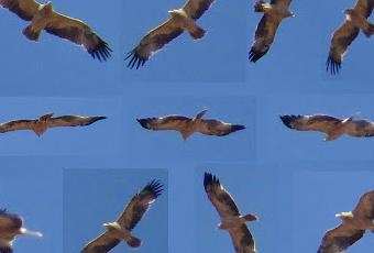 13/04/2024. Hoy a las 12,30h. 1 águila imperial ibérica (Aquila adalberti) de 2º año calendario en Barracas, Castellón. Cicleando a la salida del pueblo oeste. Gana altura y desaparece planeando en dirección a Pina de Montalgrao. (Observadores: Rebeca Celda y Víctor J. Hernández).