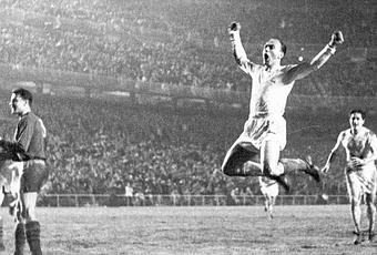 En la imagen se puede observar la incredulidad de los jugadores húngaros situados en la barrera ante el gol marcado por “la Saeta Rubia” y el salto eufórico de un Di Stéfano con los brazos alzados con Rial acercándosele. Fue el salto del que se sabía no tener rival sobre un campo de fútbol.