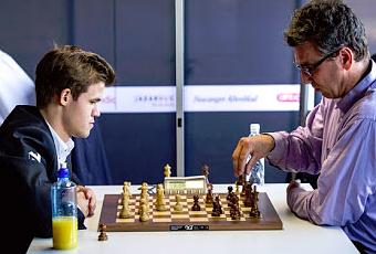 Carlsen jugando con su "maestro" Agdestein, años más tarde...De Carlsen se habló mucho ya desde sus inicios, primero entre sus más íntimos y luego poco a poco fue expandiéndose el rumor por todos los confines del planeta.