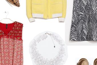 Bailarinas de piel de potro con animal print y ribete naranja, de Mango.Cazadora de tweed amarillo, de ZaraVestido de lino en blanco y negro, de ZaraVestido en gasa con estampado oriental, de MangoCollar de cristales, de Zara (este no está rebajado, es de nueva colección)Cinturón de Mango.Uggly shoes, de Zara.