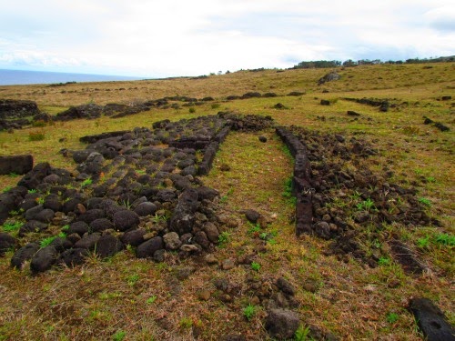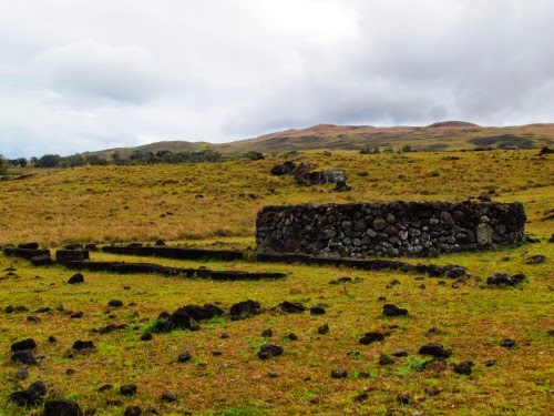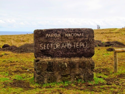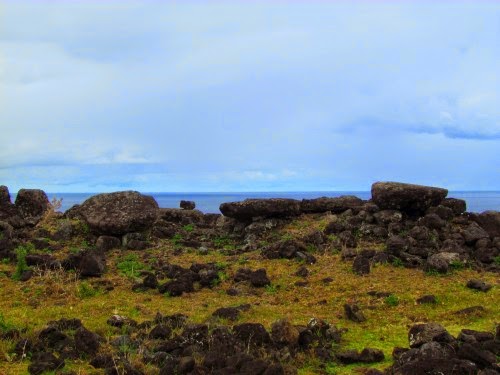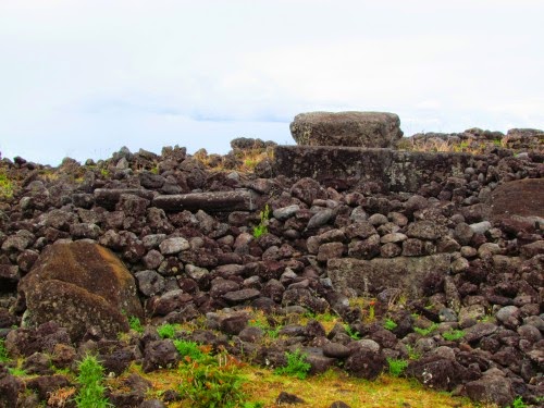 Es uno de los tantos ahu o plataformas ceremoniales que no están restaurados en Rapa Nui. los moai o estatuas monolíticas que estaban erigidas en los ahu están hoy derribadas con el rostro hacia el suelo.