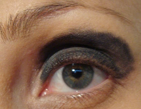 Con un lápiz negro, relleno todo el párpado móvil y pliegue.