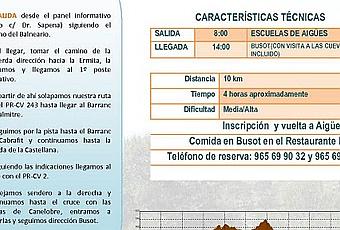 Excursión de Senderismo: Aigües - Cuevas de Canelobre - Busot, organizada por la Asociación Caminantes d'Aigües (Aguas de Busot / Aigües - Alicante)Más información: