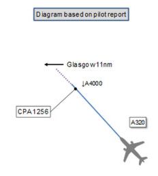 En marzo de 2013, la Junta Airprox Reino Unido ha lanzado oficialmente la investigación documento en el cuasi colisión. En el informe se puede leer el diálogo que tuvo lugar entre la aeronave y la torre de control de Glasgow, unos momentos después de la colisión tocó: