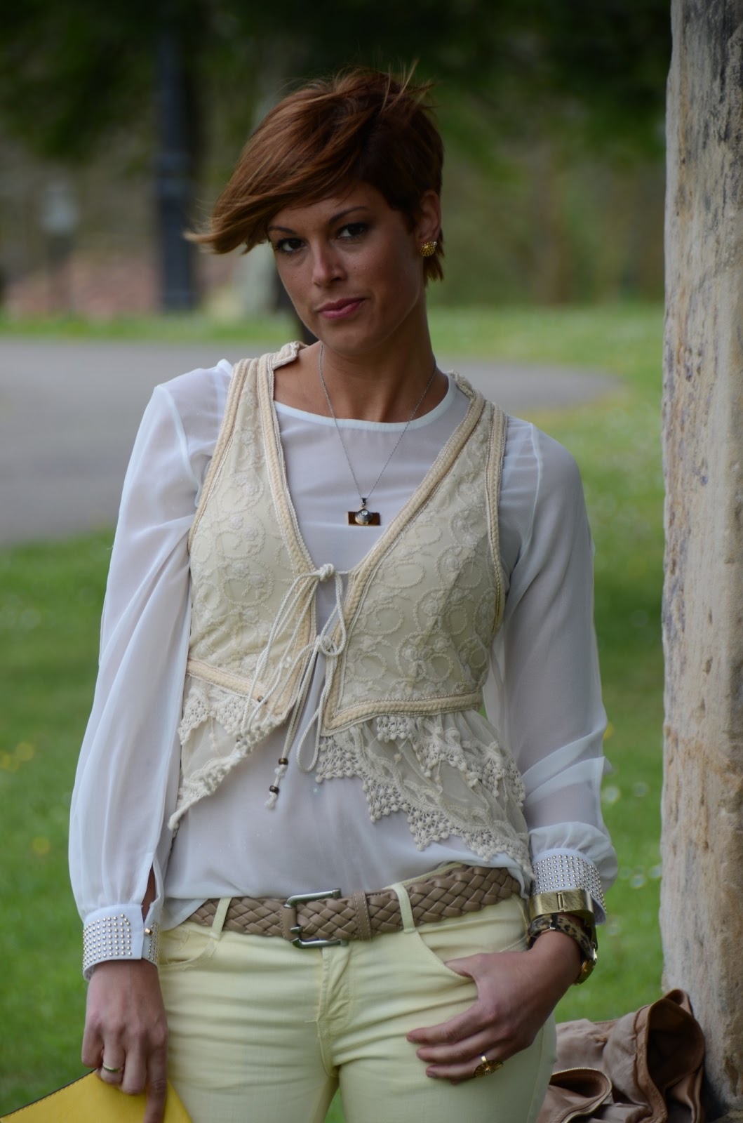 Como veis combine mi chaleco de aire hippie con una de mis cazadoras perfecto favoritas, me chifla la combinación del beige con tonos cálidos.