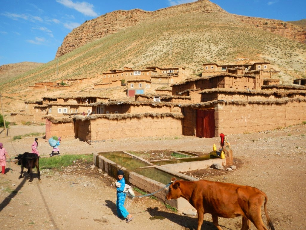 Aït Wanougdal es un pueblo bereber del Valle Aït Bouguemez situado a 1.926 metros de altitud en el Alto Atlas marroquí. Llegamos a esta aldea procedentes Taghoulid durante nuestro camino hacia Zawyat Oumzi, situado en el fondo del valle. Destaca un gran abrevadero situado junto al camino.