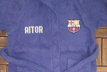 Un albornoz para un peque llamado Aitor al que le gusta el Barcelona.