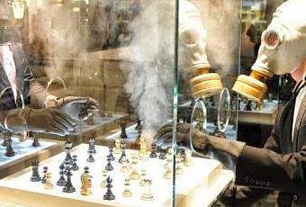 Ya hemos visto alguna vez por aquí juegos de ajedrez originales y extravagantes, incluso con ratones disecados, pero lo de las piezas asfixiadas en una cámara de gas en un concepto insólito, que además cuesta un dineral: más de 60.000 euros. La casa Purling London, especializa en piezas y tableros de lujo, ha presentado esta idea diseñada por el artista libanés afincado en Londres T. Raymonzrek.
