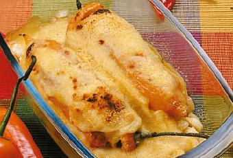 4. Cubrir los ajíes con la salsa blanca, y espolvorear queso parmesano encima.