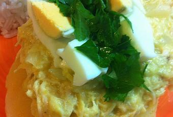 Consiste en una crema espesa elaborada con pollo cocido y desmenuzado en hebras, que se liga con pan remojado en leche y con el propio caldo de cocer el pollo. Se acompaña de patatas y arroz hervidos.