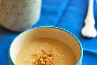 He mirado y remirado muuuuucho para encontrar una receta de este genial cocinero que pudiera cocinar. Pero al final he decidido tirar de imaginación y basandome en el decálogo de la Nouvelle Cuisine reinventar un plato mio. Y así nace este ajoblanco. De sabor delicado, ligeramente tostado y de un color precioso. He usado productos frescos y de muchisima calidad, no he cocido demasiado, he aligerado el plato, no tiene nada de adobo, ni roux, se sirve frío, es cocina regional revisada, se nota el sabor de los productos.... Vamos que cumple con el decálogo entero!!!