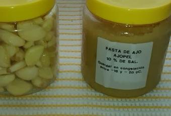 Mi agradecimiento a http://www.ajopel.com/por estos estupendos productos, que ya tengo ganas de probarlos con algunas de mis recetas. DIENTE DE AJO FRESCO (BOTE DE 1 KG) Indicado especialmente para hostelería, catering, colectividades, etc., donde el ajo aporta a cada plato todas sus propiedades culinarias. La variedad de ajo que suministra AJOPEL es la más apreciada por su calidad: el ajo morado. Hasta ahora la industria de la alimentación ha utilizado en la mayoría de los casos otros sustitutivos del ajo (en polvo, deshidratado, en escamas...) ninguno de los cuales puede aportar no solo los componentes beneficiosos del mismo, sino el sabor y aroma de un ajo natural como el de AJOPEL proporciona a sus elaborados. Con AJOPEL lo tendremos listo para utilizar sin la pérdida de tiempo que el pelado manual supone. PRESENTACIÓN Botes de plástico transparente de 1 Kg. CONSERVACION Conservar entre 0º y 2º C. y proteger de la luz PASTA DE AJO NATURAL FRESCA. Especialmente indicada para las industrias cárnicas, conserveras, salsas, etc. De suave aspecto cremoso, conserva intactas todas las propiedades del ajo natural, su sabor y su olor. PRESENTACIÓN Cubos de plástico de 5 y 20 Kg. CONSERVACION Conservar entre 0º y 2º C. y proteger de la luz