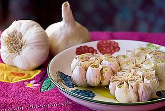 En este caso, y en cuestión de 5 minutos, se puede disponer de unas cuantas cabezas de ajos asados, que servirán de base para un montón de platos, tales como sopas, ensaladas, guisos, o untados sobre una tostada de pan, con jamón y tomate, o ternera, etc.