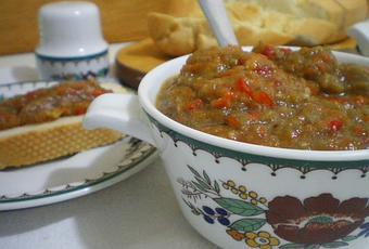 El Ajvar es un puré de textura gruesa, a base de pimiento rojo y berenjenas asadas, aliñado con ajo, vinagre, aceite y sal, muy típico en la gastronomía balcánica, de Serbia y Croacia sobre todo.Se prepara en grandes cantidades en otoño, cuando los huertos se inundan de pimientos, y se envasa al vacío para consumirlo el resto del año.