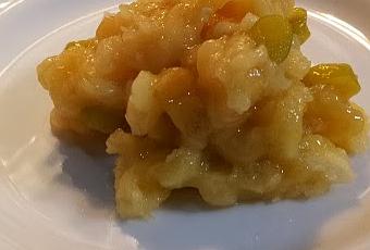 Machacar los plátanos. Ahora cortamos la guindilla en rodajas finas y la añadimos a los plátanos, especiamos con el jengibre, mezclamos todo bien y listo.