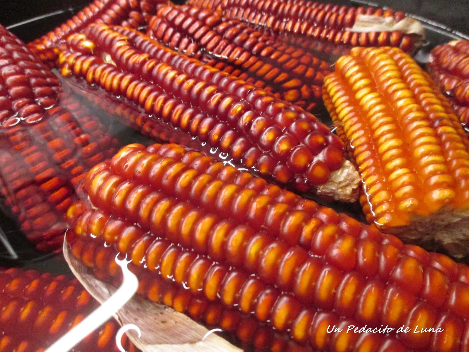 Dos bandejas muy rústicas a los lados con campanas o clochés en hierro forjado que más tarde contendrán otro elemento que me encanta, el maíz rojo.