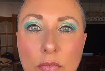 Utilicé una paleta de sombras que tiene todos los colores (que tengo hace miles de años y me encanta), y utilicé 6 tonos verdes y uno amarillo, más los dos tonos brillantes de las sombras en crema de Oulac que utilicé la otra vez.. Justo al lado de la ceja me di la última sombra líquida nude de Oulac, y me gustó bastante.