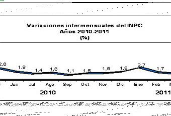 Con este resultado, la variación acumulada del INPC durante los primeros cuatro meses del año 2011 se ubica en 7,5%, muy por debajo de la observada en el mismo período del año 2010 (11,3%). Por su parte, la variación anualizada confirma la tendencia a la desaceleración, al situarse en 22,9%, la menor observada en los últimos 28 meses, desde que comenzó a elaborarse el índice de precios con cobertura nacional.