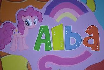 Y como regalito, llevó el regalito de este curso, un cartelito con su nombre, en esta ocasión, de Pequeño Pony.