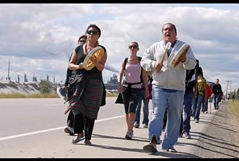 Nadie siente esta afirmación de forma tan profunda como las gentes que han habitado la región del Río Athabasca durante generaciones. Ellos han visto cómo se destruían sus tierras, se les ha obligado a respirar aire contaminado y en muchas comunidades ya no pueden beber el agua. La flora y la fauna de que han vivido de forma tradicional están escaseando, los peces que pescan tienen tumores y las plantas medicinales están desapareciendo al mismo tiempo que el paisaje cambia de forma permanente. El Jefe Allan Adam de Fort Chipewyan, uno de los pueblos indígenas o Naciones Originarias de Canadá, ha dirigido una solicitud formal al Ministro canadiense de Recursos Naturales, Joe Oliver, y a la Primer Ministro, Allison Redford, para que se unan a la cuarta Marcha Anual de Curación, un evento que tendrá lugar en Fort McMurray el 6 de julio de 2013. Se trata de una marcha de catorce kilómetros que se llevará a cabo durante todo un día, un encuentro espiritual que se centra en la curación del territorio de las naciones originarias, que está sufriendo el impacto de la expansión de la explotación de las arenas bituminosas.