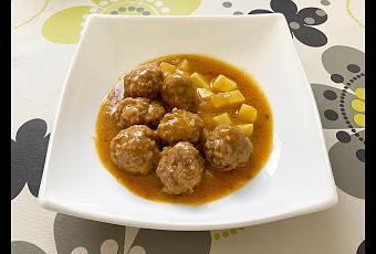 Hoy os traemos una nueva receta en nuestra olla lenta, ya sabéis que le sacamos muchísimo partido a nuestra CrockPot desde que la compramos, y ésta es una receta que repetiremos seguro.Ingredientes para 2 personas:- 400 gr de carne picada mixta- 1 huevo- 1 diente de ajo- Pan rallado- Perejil picado- Sal- Pimienta negra- 300 ml de crema de calabaza- 1 patata medianaReceta:- Prepara con antelación la crema de calabaza y déjala que atempere.- Pica el ajo en trocitos muy pequeños.- Mezcla la carne picada con el huevo, el perejil picado, una pizca de sal y de pimienta y un poco de pan rallado.- Forma las albóndigas e introdúcelas en la CrockPot.- Lava, pela las patatas y córtalas en cuadraditos.- Añádelas a la olla junto con las albóndigas.- Vierte por encima la crema de calabaza y mueve un poco la cubeta para que se distribuya bien por el fondo.- Tapa la olla y cocina en ALTA una hora y media para que queden jugosas.