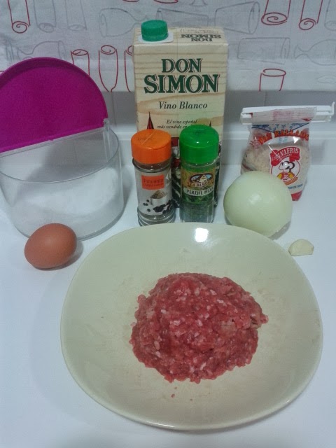 4.- Por último, añadimos 1 huevo y el 1/4 de vaso de vino blanco (esto nos va a dejar las albóndigas muy jugosas).