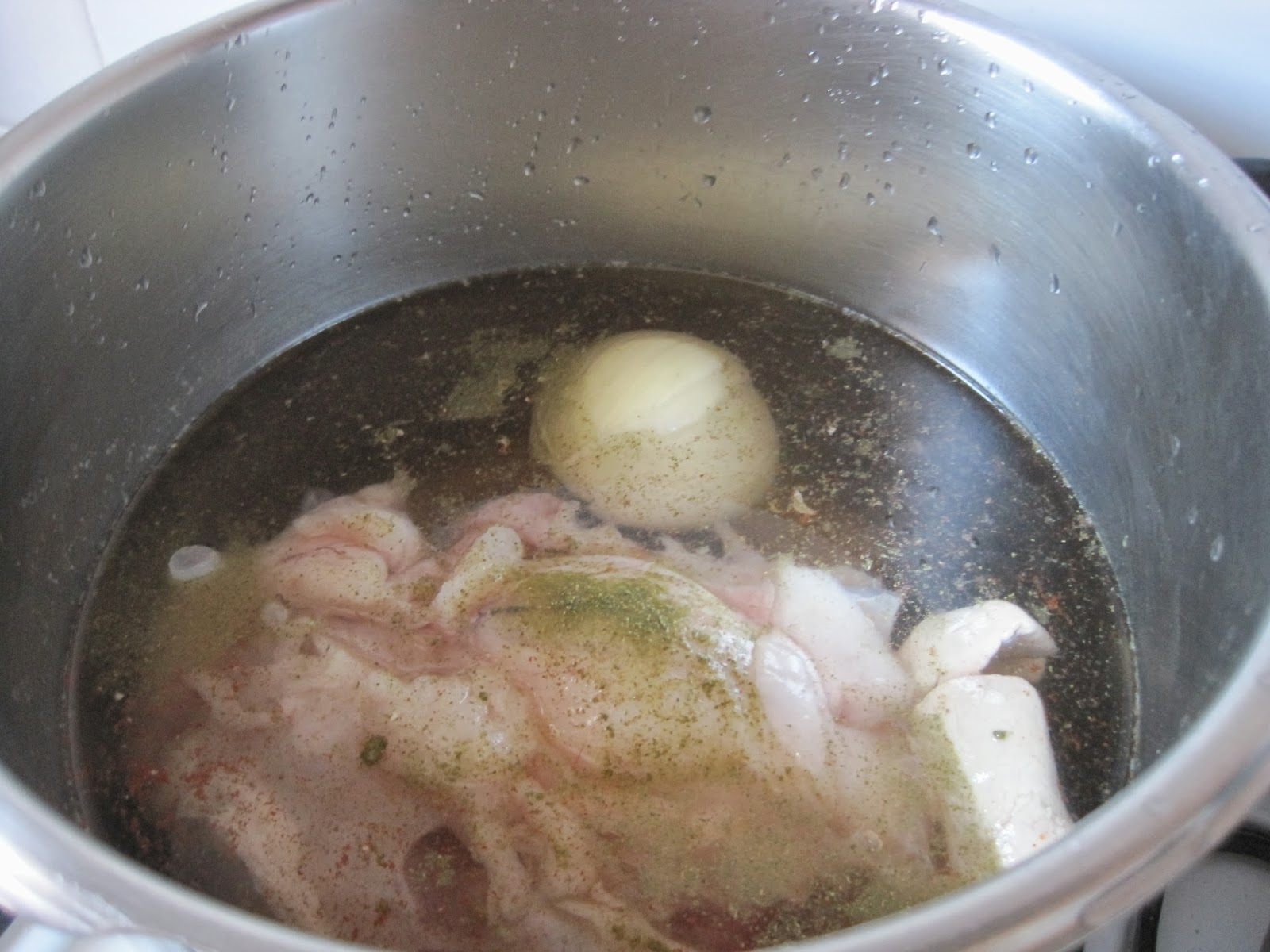 1 Cabeza de rape (1 Kg)1 Cebolla o puerro ( 200 gr)1 Hoja de laurel2 Dientes de ajo2 litros de agua