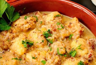 Hoy he hecho albóndigas de bacalao, pero un tanto diferentes a las de siempre, éstas van cocinadas al vapor y con una salsa muy típica de mi tierra, con un majaillo de almendras que le da un toque riquísimo, es la salsa de albóndigas que hace mi madre, pero en vez de restos del cocido que utiliza ella, yo he probado con el bacalao y el resultado me ha gustado mucho.