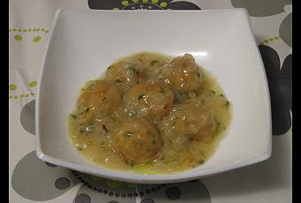 - 12 uds de albóndigas de bacalao- 1/2 cebolla