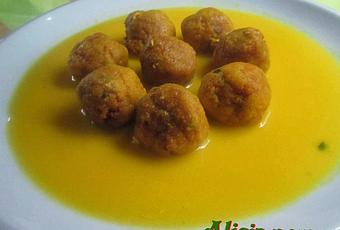 Echamos las albóndigas en el caldo y dejamos cocer veinte minutos a fuego medio. Probamos de sal.