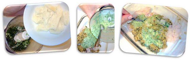 Picamos las colitas de merluza y los mejillones en un robot de cocina o picadora y mezclamos en un recipiente amplio.