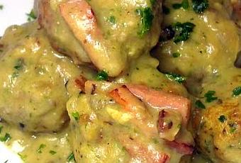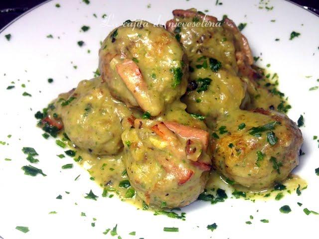 Hayyyy!! En cuanto vi en el blog de Angie "La cocina de Angie" su receta "albóndigas de merluza y gambas" recordé que tenía unas colitas de merluza fresca que nunca sabes cómo preparar porque no quedan muy vistosas y al menos en mi casa, nadie las quiere, solo quieren lomos... ésta es la mía, voy a camuflarlas y con unos mejillones de los que vienen en bolsa sin cáscara que tengo en el congelador perfecto. Además tenía la receta de una salsita "ají" que esperaba paciente para ser la compañera de algún plato que aún no me había inspirado y añadiéndole un toque de tiras finas de jamón combinaría estupendamente.