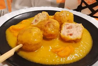 ALBÓNDIGAS DE POLLO Y JAMÓN EN SALSA DE ZANAHORIA