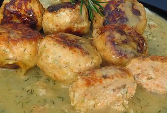 Volcar las albóndigas, y cocer unos 5 minutos a fuego lento para que tomen sabor. Servir espolvoreadas con un poquito de eneldo.